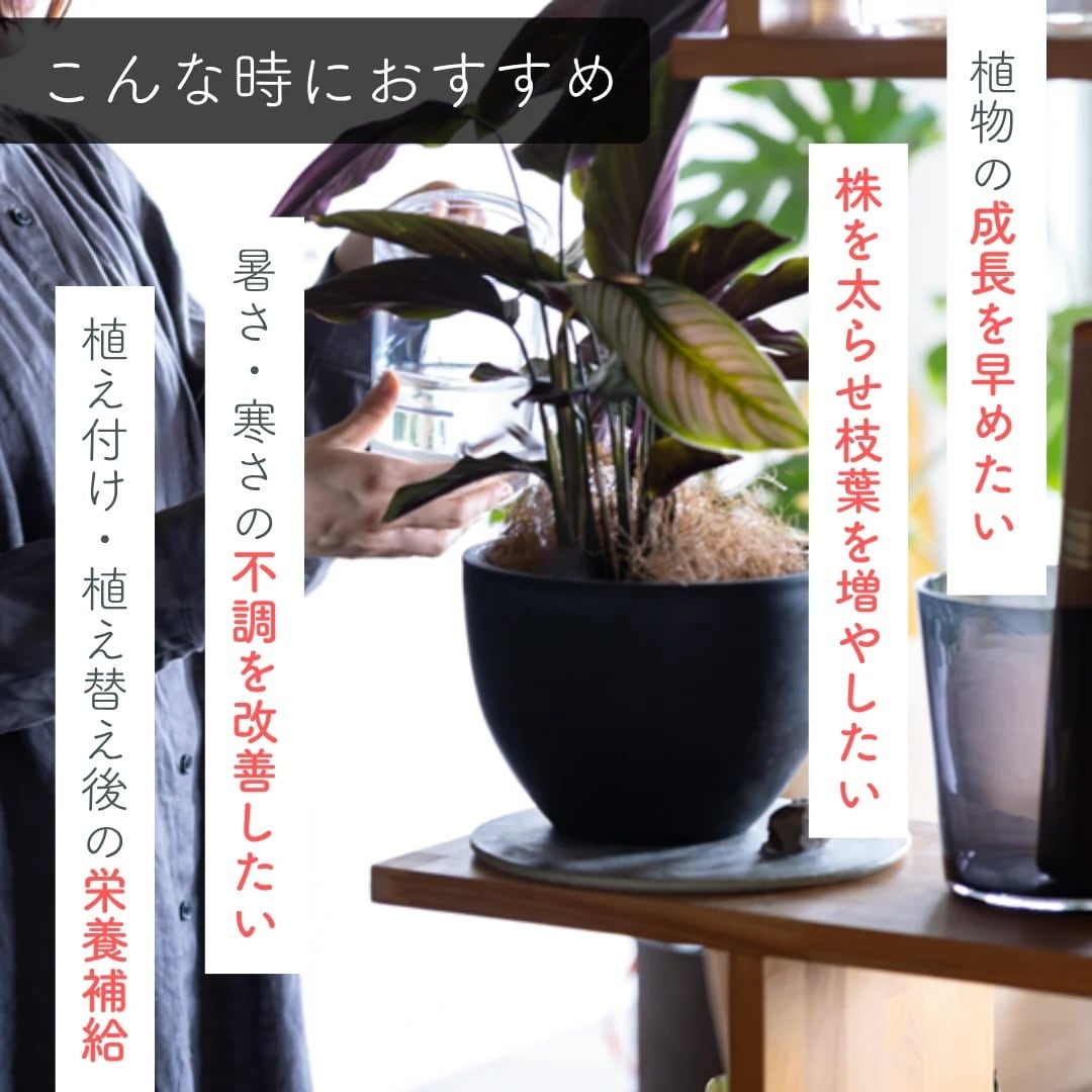 毎日の水やりにひと手間加えるだけで、あなたの大切な植物に栄養をチャージ。